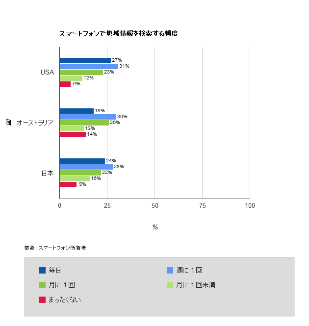 スマートフォンで地域情報を検索する頻度